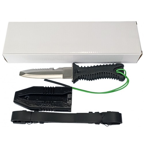 Нож продается в аккуратной картонной упаковке и комплектуется ножом, ножнами, а также двумя резиновыми ремешками для крепления на руку или ногу (размер каждого ремешка примерно 50х1.7х0.2 см). «TALONS» – ваш надежный помощник под водой!