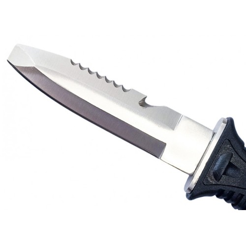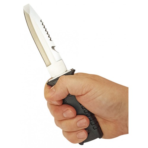 Подводный нож «TALONS» - это идеальный выбор для дайверов, охотников и тех, кто ищет надежный инструмент для бытового применения под водой. Изготовленный из качественной нержавеющей стали, нож имеет лезвие в форме стилета с уникальным сочетанием заточки: одна сторона идеально гладкая, а другая оснащена серрейторной (пилообразной) заточкой и стропорезом для удобства в любых ситуациях.